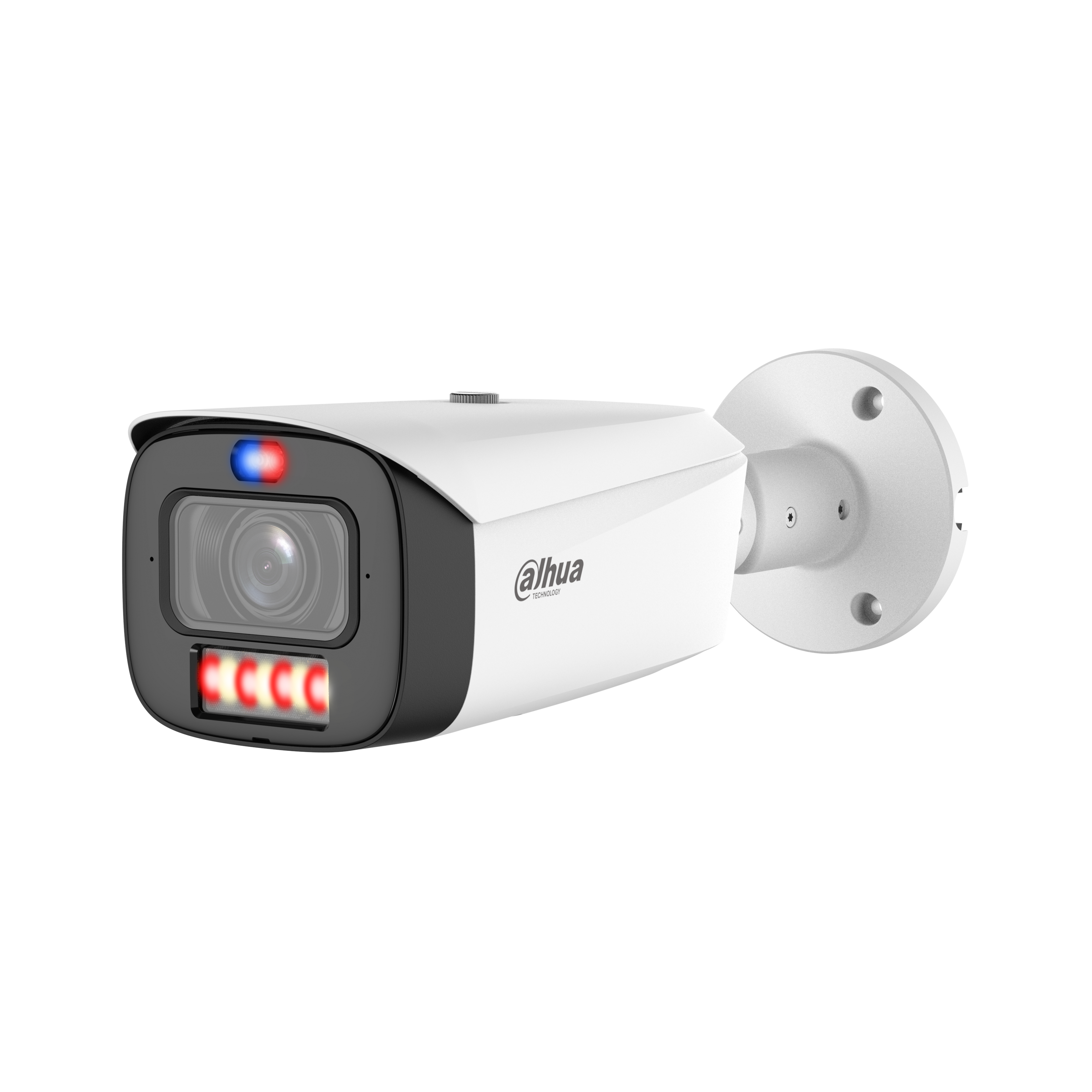 Cámara IP de la serie de disuación activa TIOC, tres en uno, cámara, sirena y alarma. Posee Sirena de luz y sonido. Detecta movimientos y permite la detonación de un juego de luces que permiten disuadir. Adicionalmente posee micrófono y bocina para la emisión de un sonidos como alarmas.